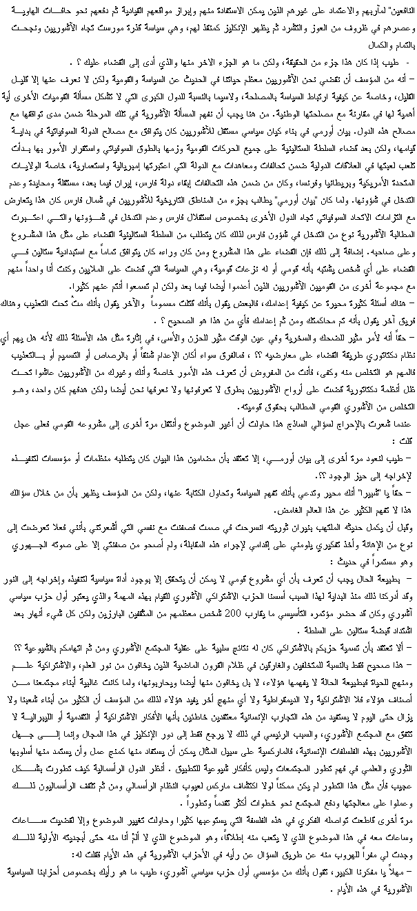 قرى آشورية مشاريع حكم ذاتي مواقع الكترونية رياضة كتب فنون الأعلام الاشوريون فولكلور آشوري التاريخ الاشوري مقابلات وثائق مقالات الصفحة الرئيسية