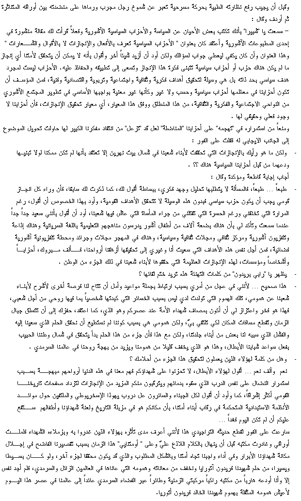 قرى آشورية مشاريع حكم ذاتي مواقع الكترونية رياضة كتب فنون الأعلام الاشوريون فولكلور آشوري التاريخ الاشوري مقابلات وثائق مقالات الصفحة الرئيسية